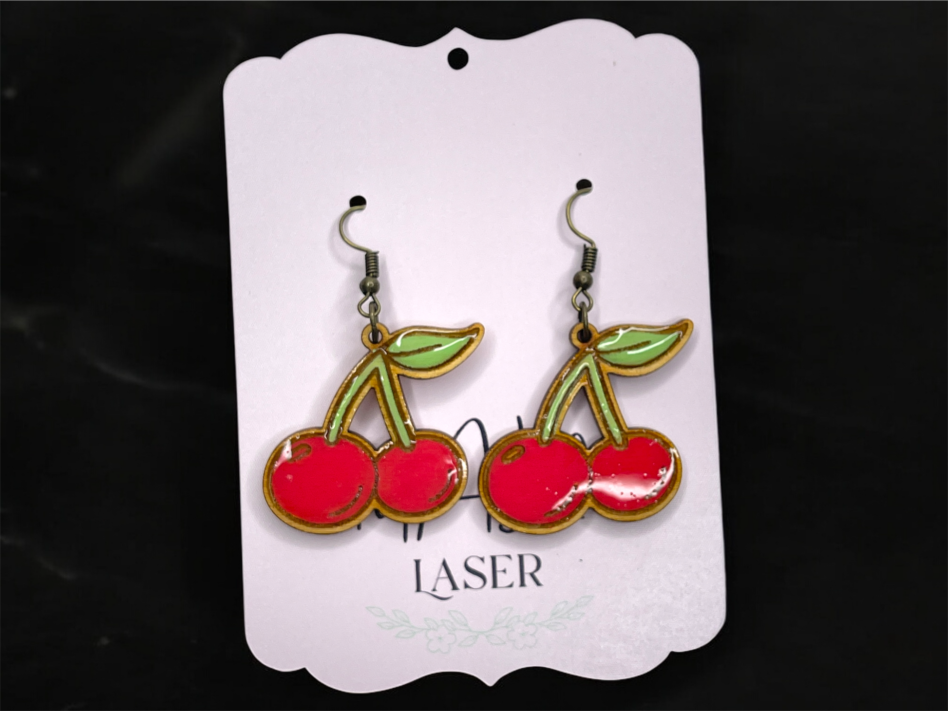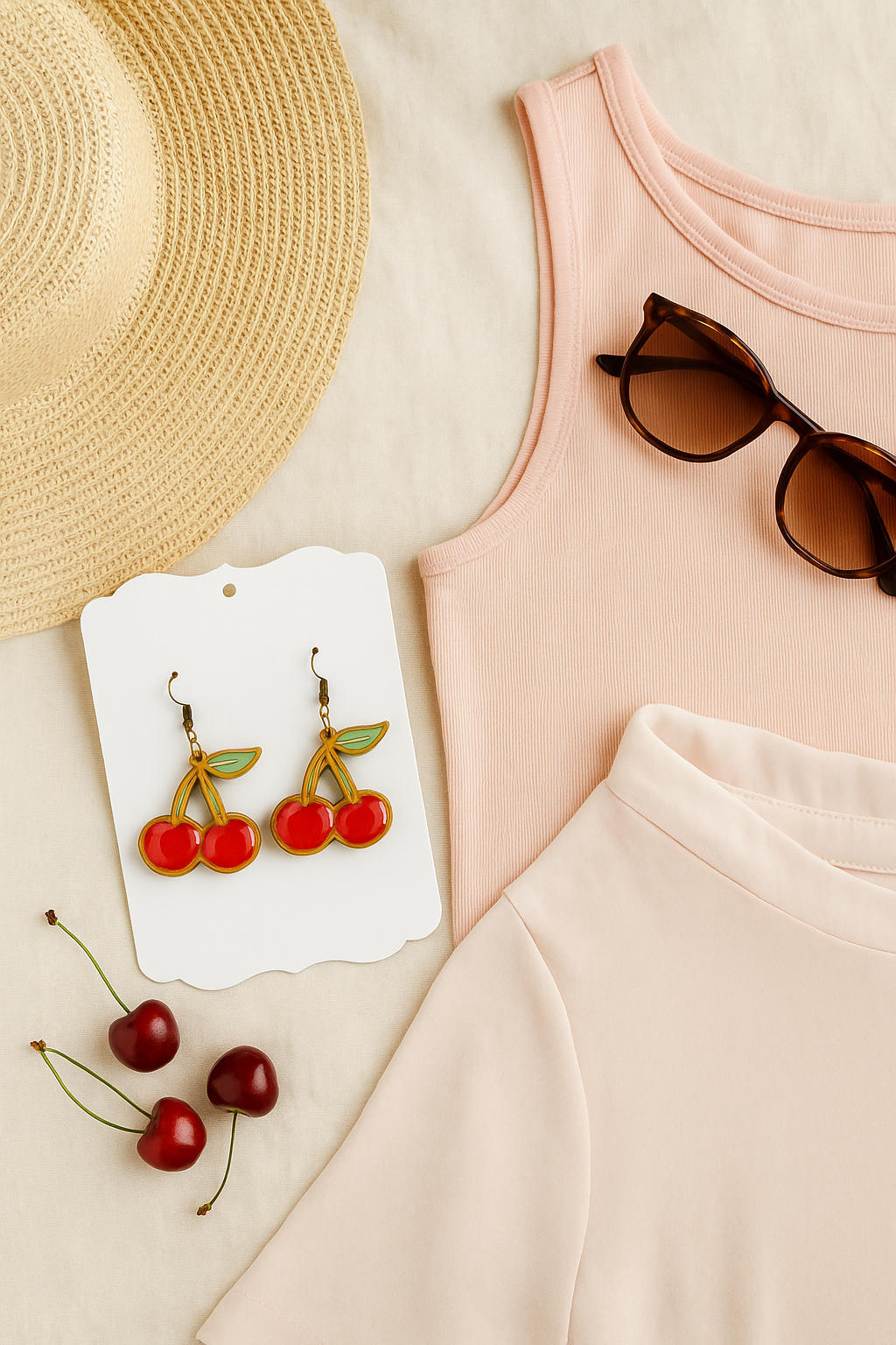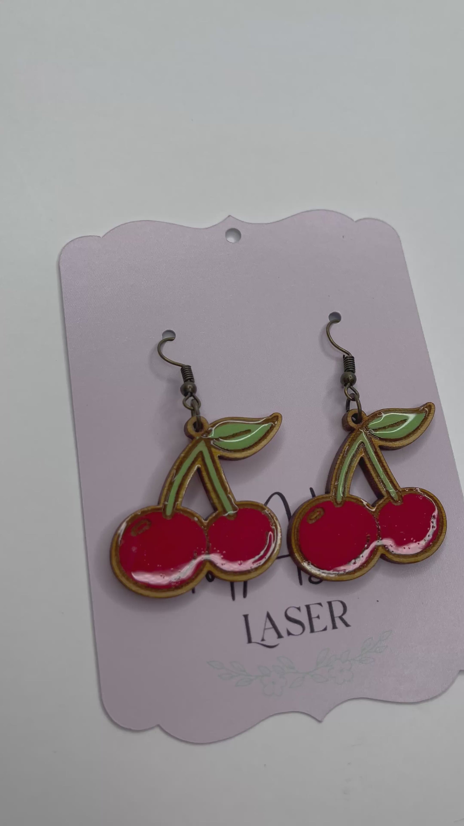 These handcrafted earrings feature a charming cherry design made from layered wood and glossy resin. Each pair is laser cut for precision, hand-painted, and finished with a glossy resin coat for that perfect pop of shine. The vibrant red cherries and green leaves give a nostalgic retro vibe ā perfect for summer outfits, festivals, or gifting!