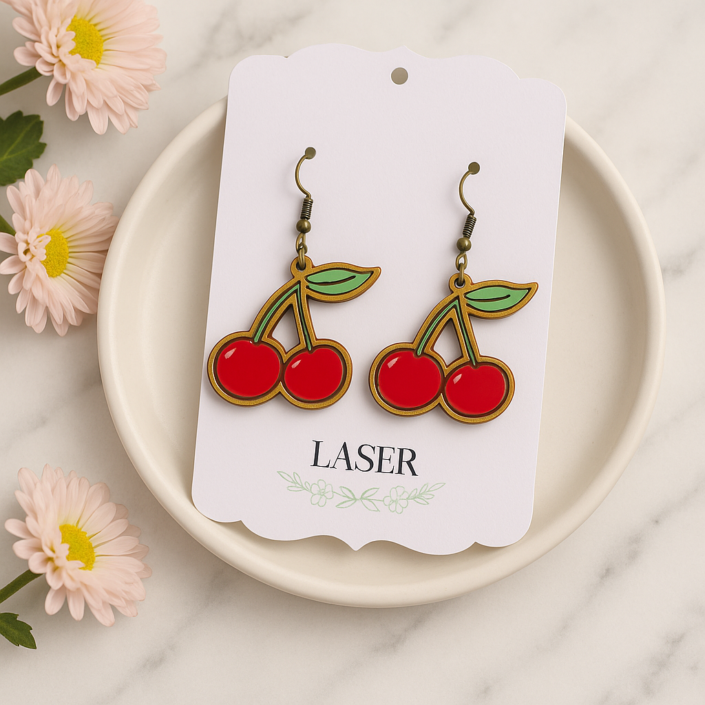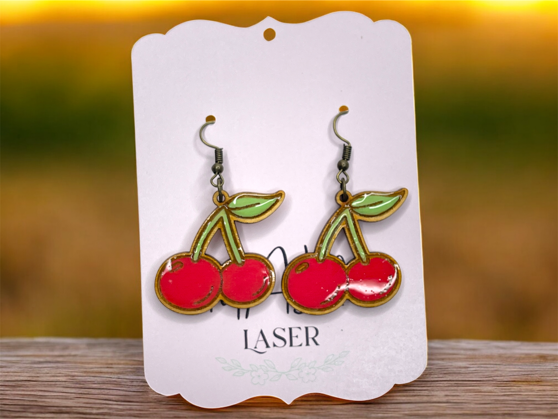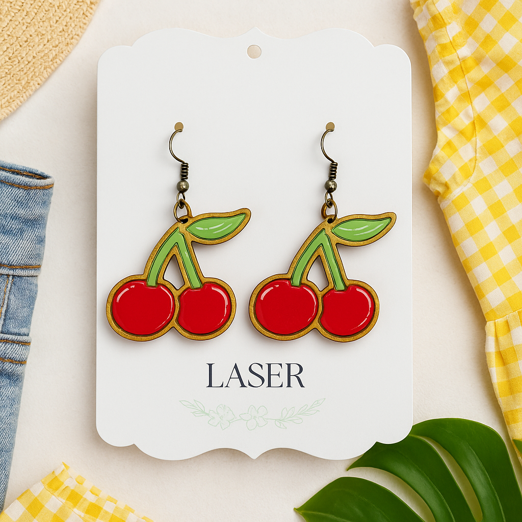 These handcrafted earrings feature a charming cherry design made from layered wood and glossy resin. Each pair is laser cut for precision, hand-painted, and finished with a glossy resin coat for that perfect pop of shine. The vibrant red cherries and green leaves give a nostalgic retro vibe ā perfect for summer outfits, festivals, or gifting!
