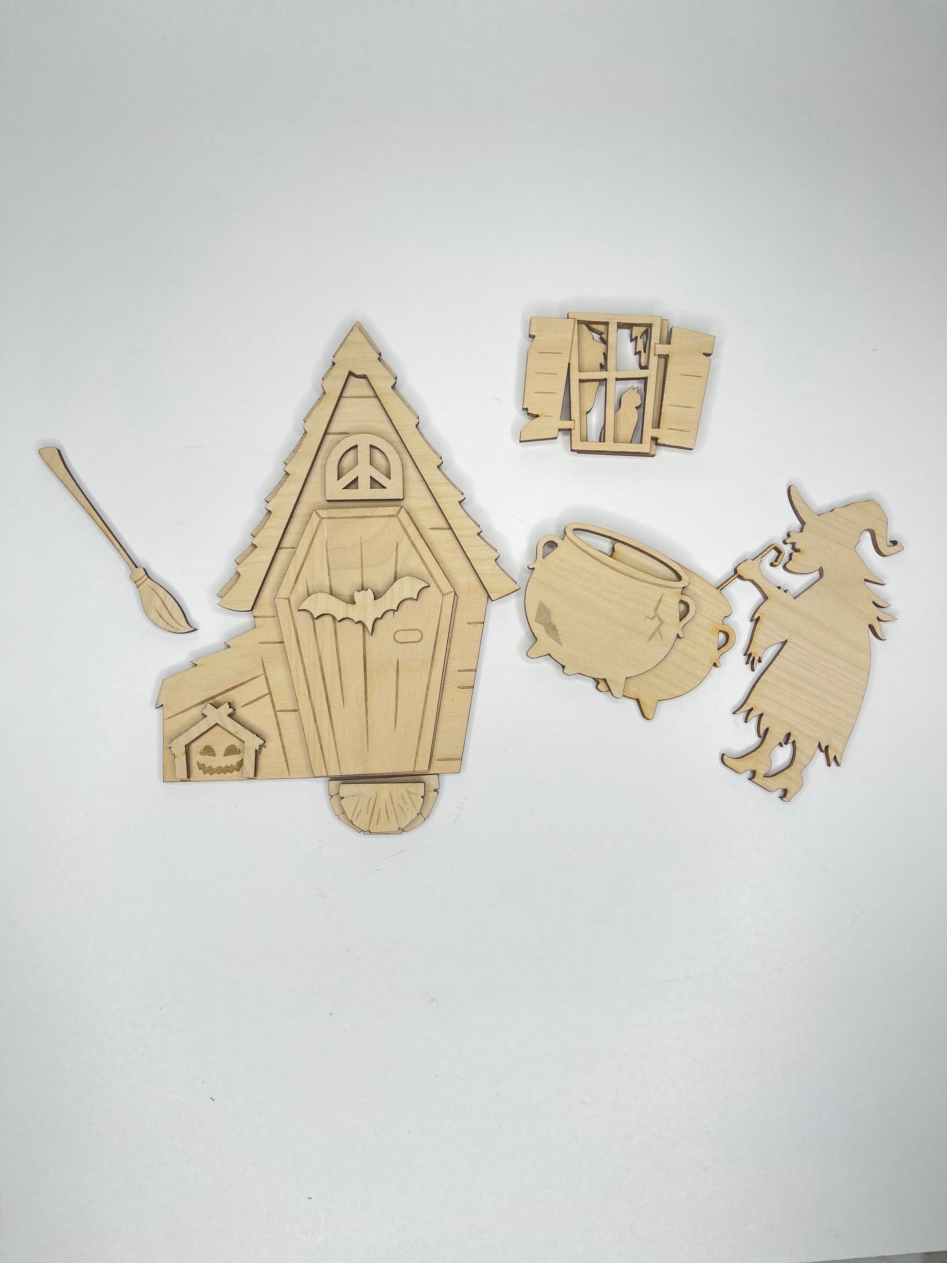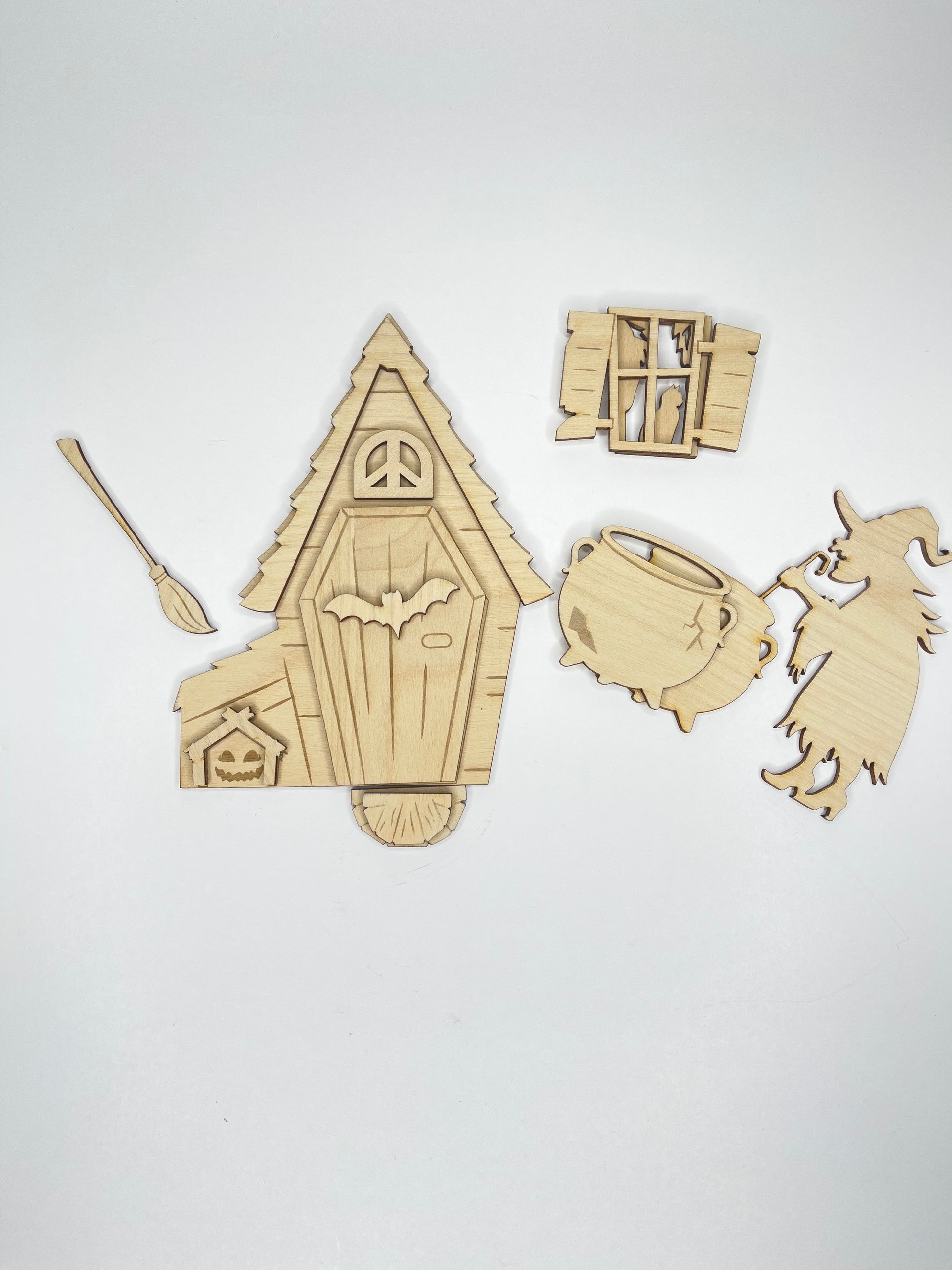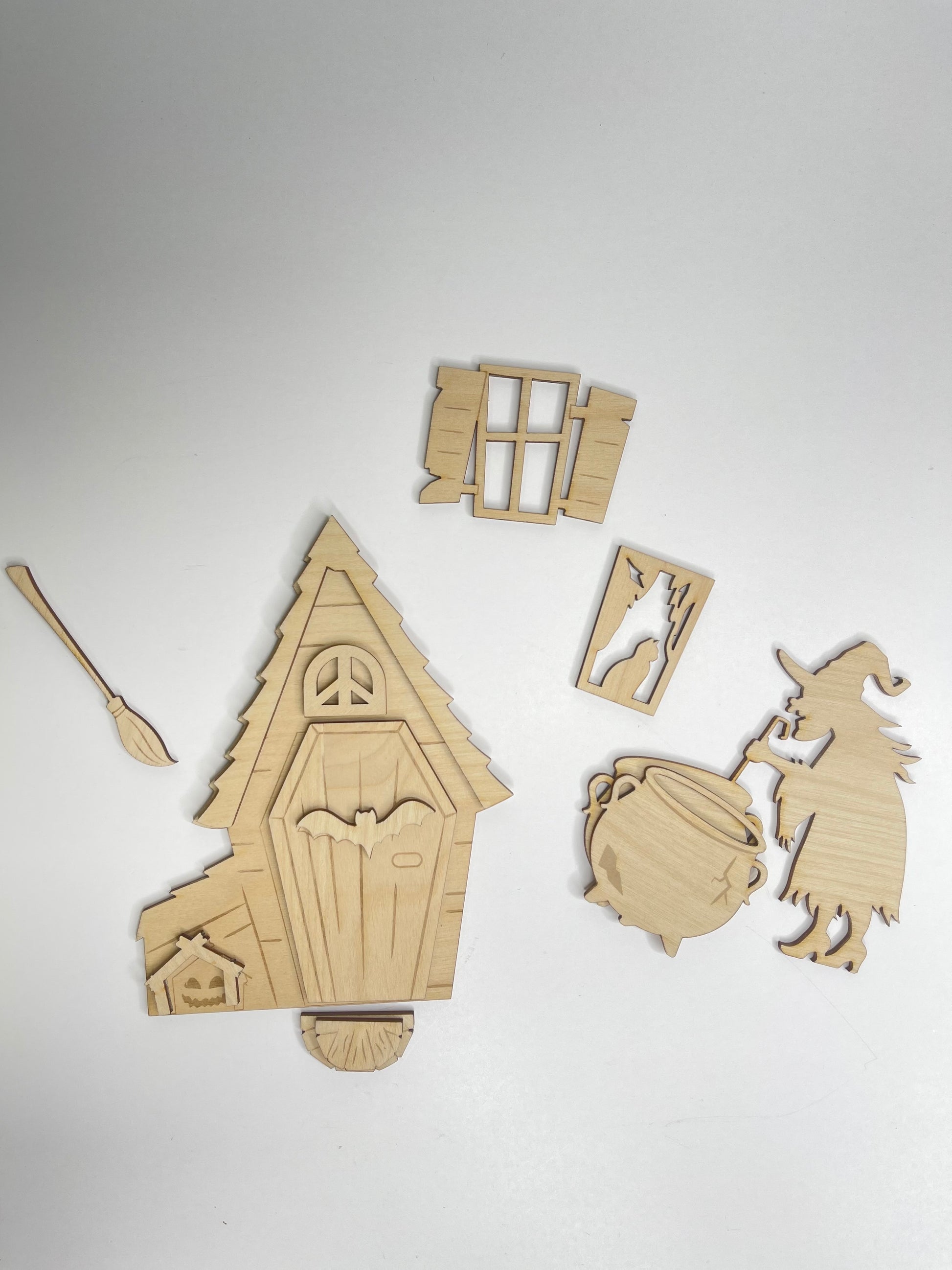Each piece is laser cut and ready to paint, stain, or embellish however you like. Perfect for fairy garden lovers, Halloween crafters, or anyone who wants to add a touch of witchy fun to their home or porch this spooky season!