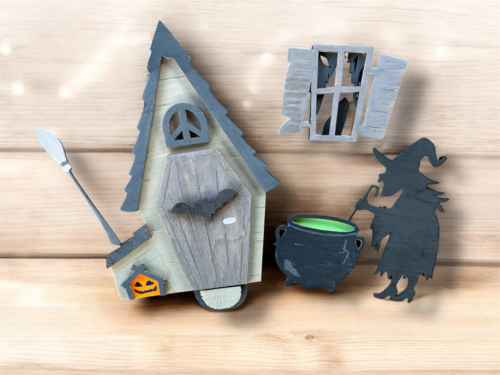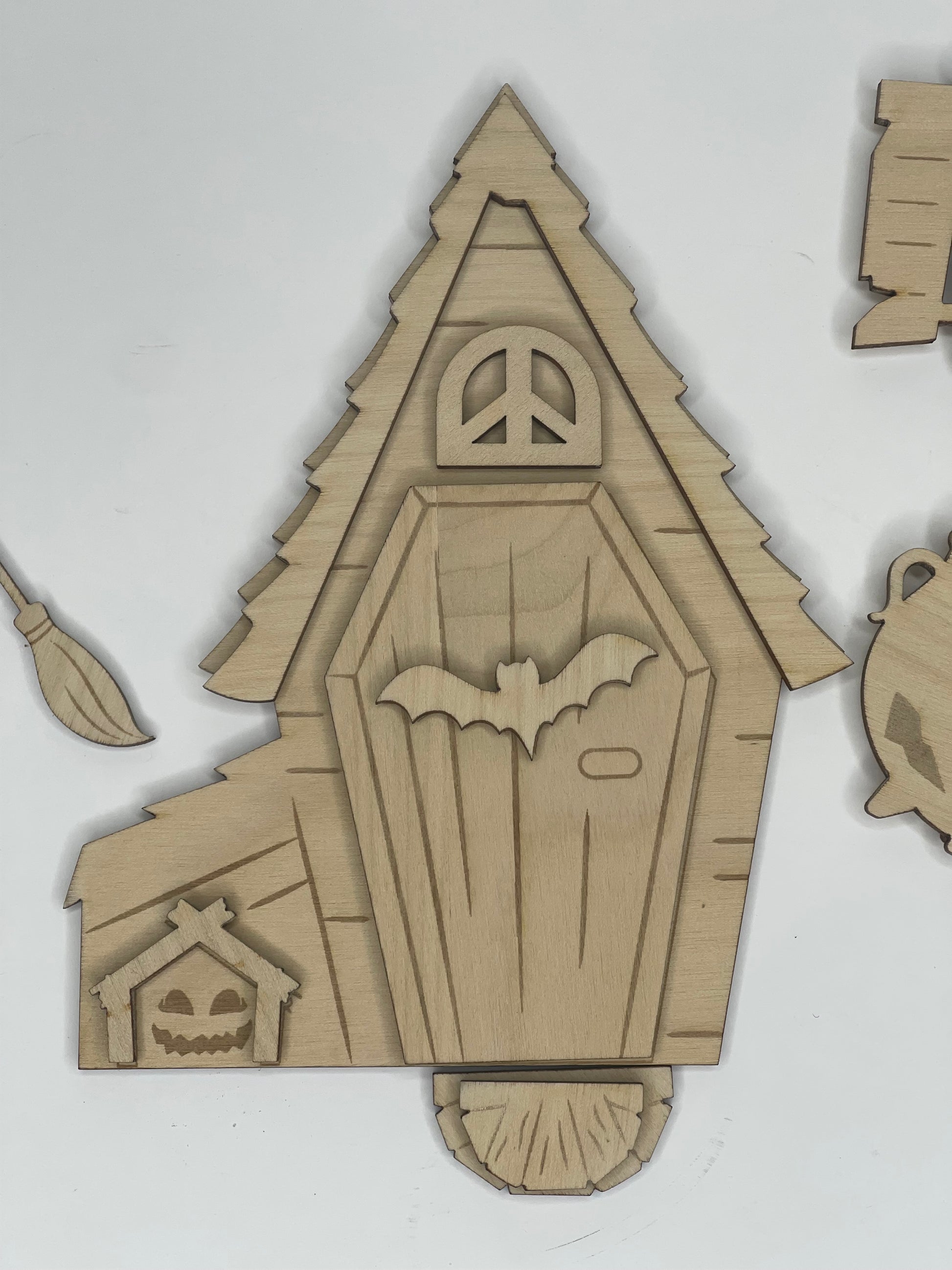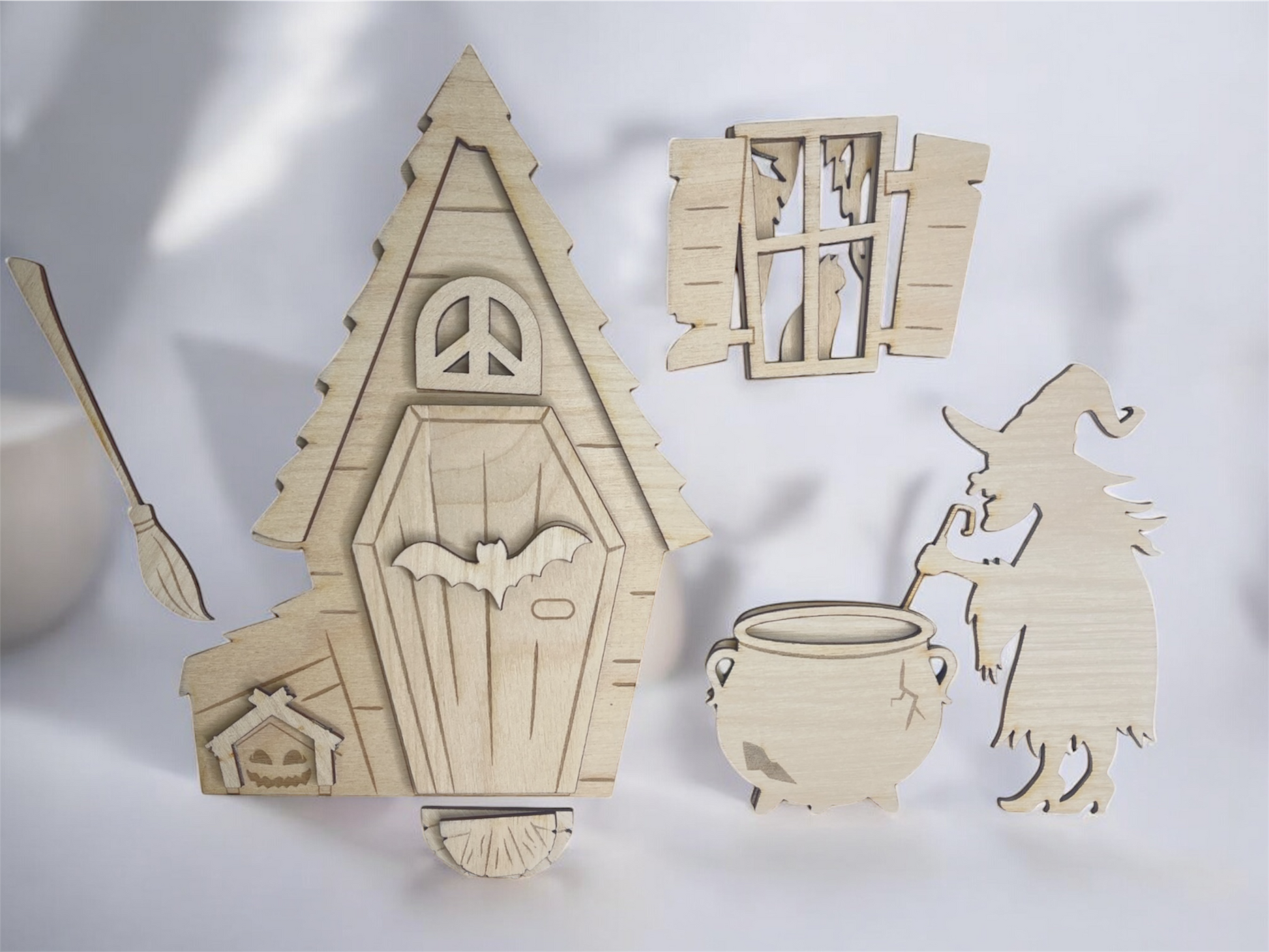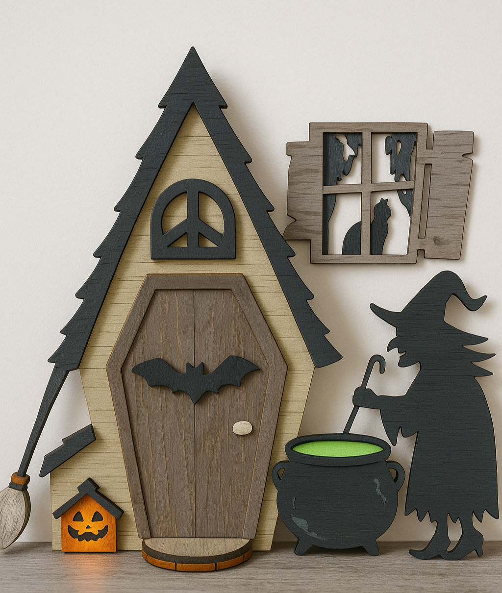 Each piece is laser cut and ready to paint, stain, or embellish however you like. Perfect for fairy garden lovers, Halloween crafters, or anyone who wants to add a touch of witchy fun to their home or porch this spooky season!