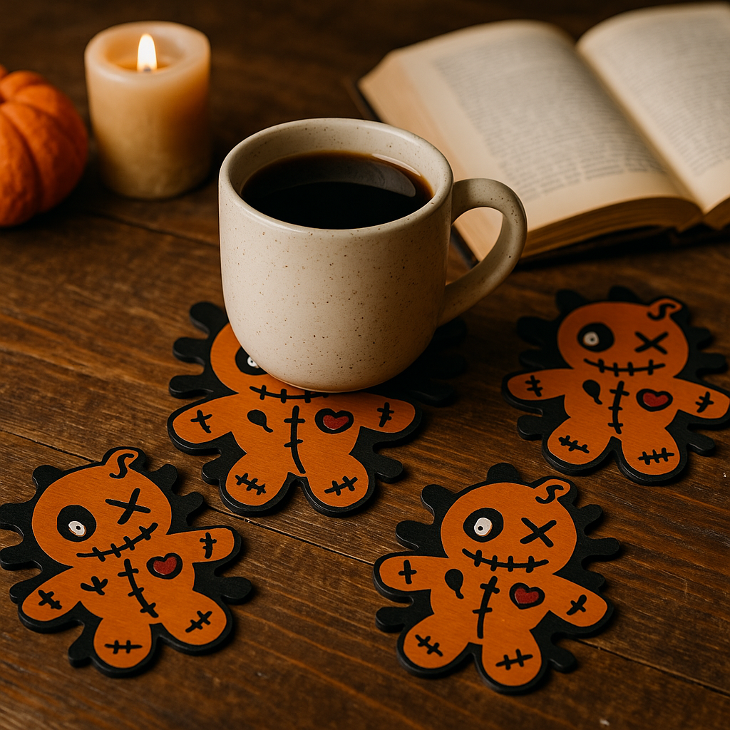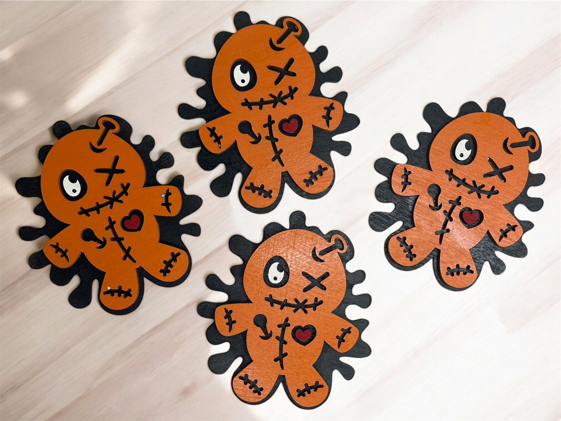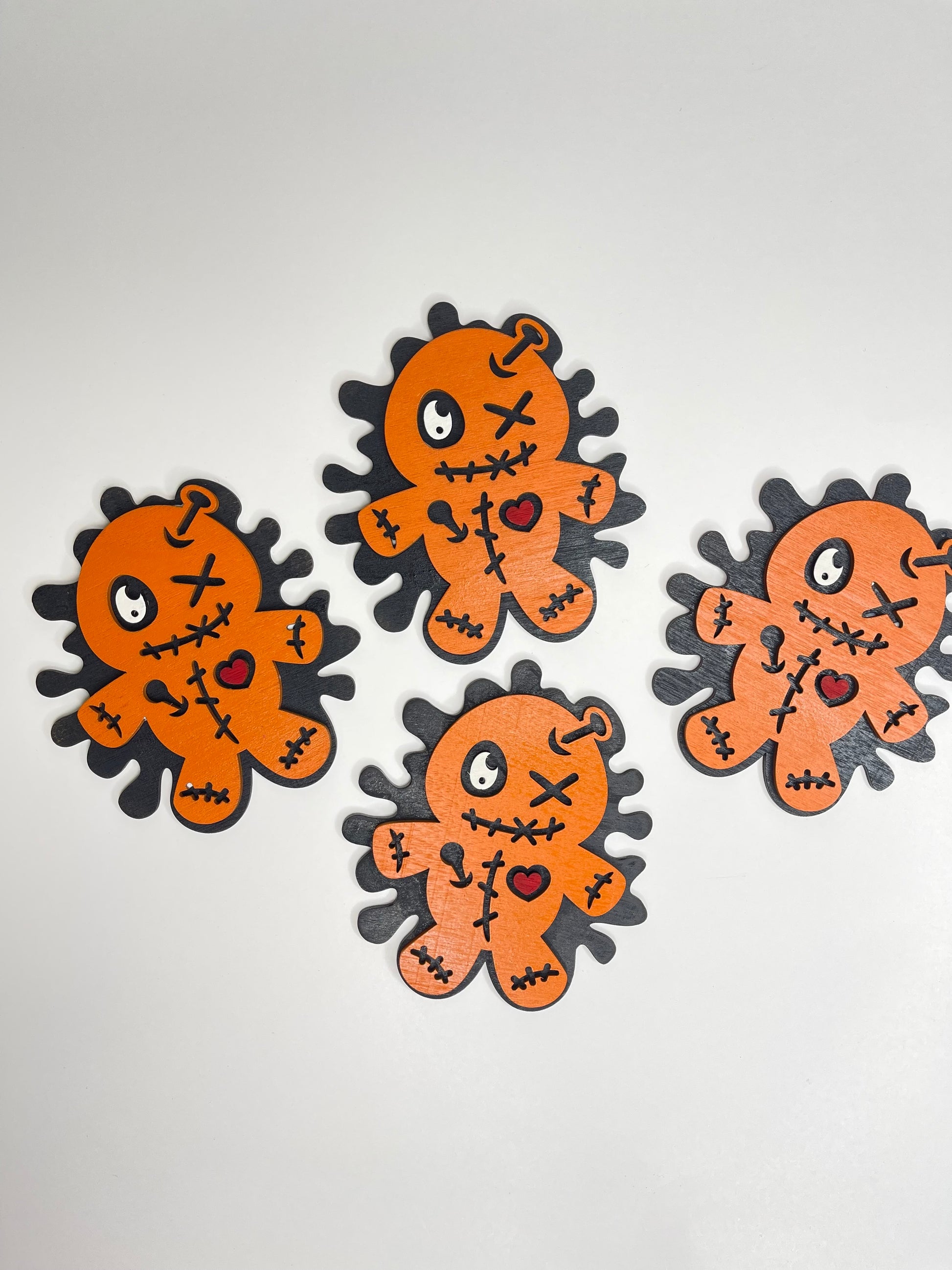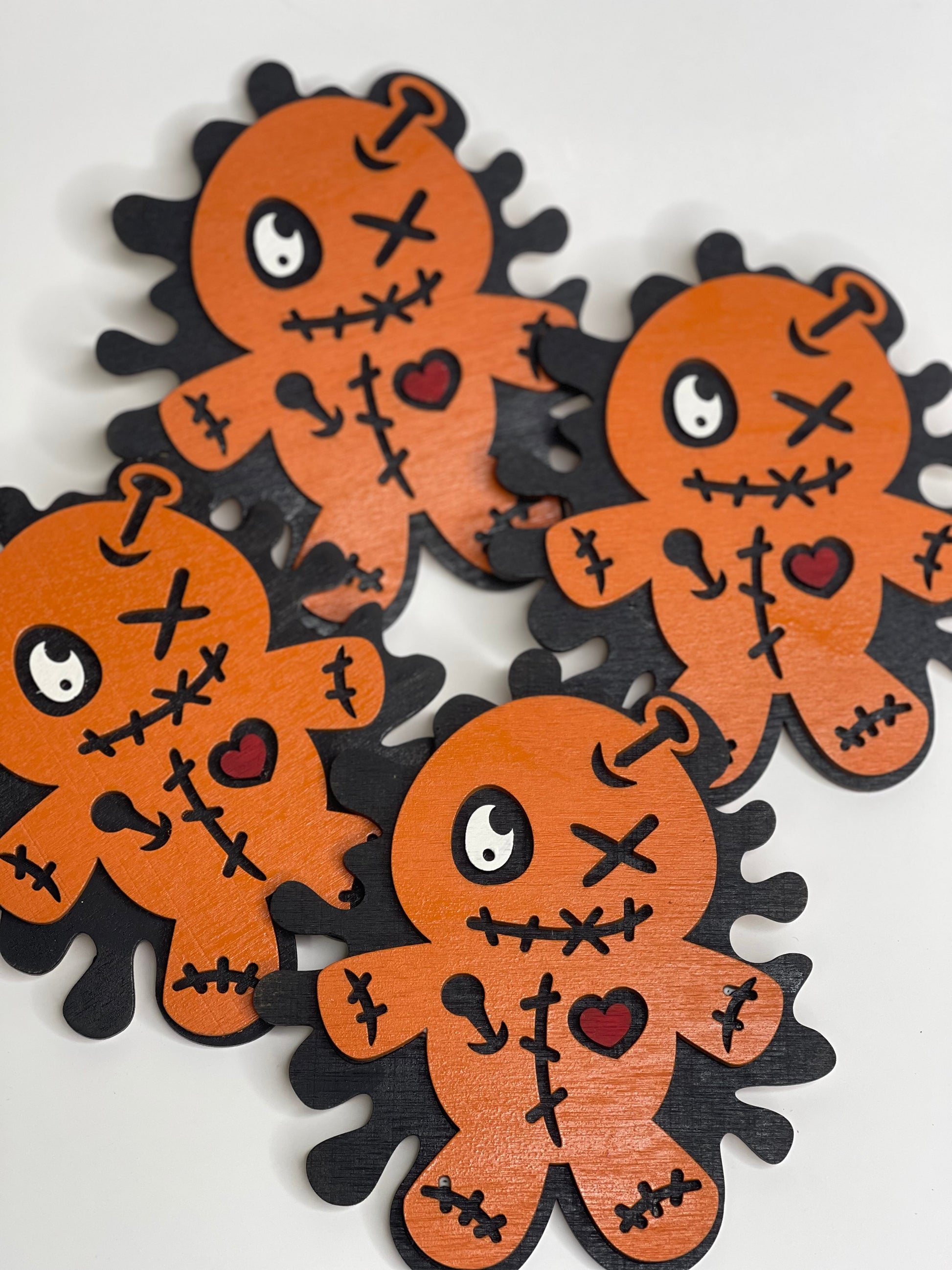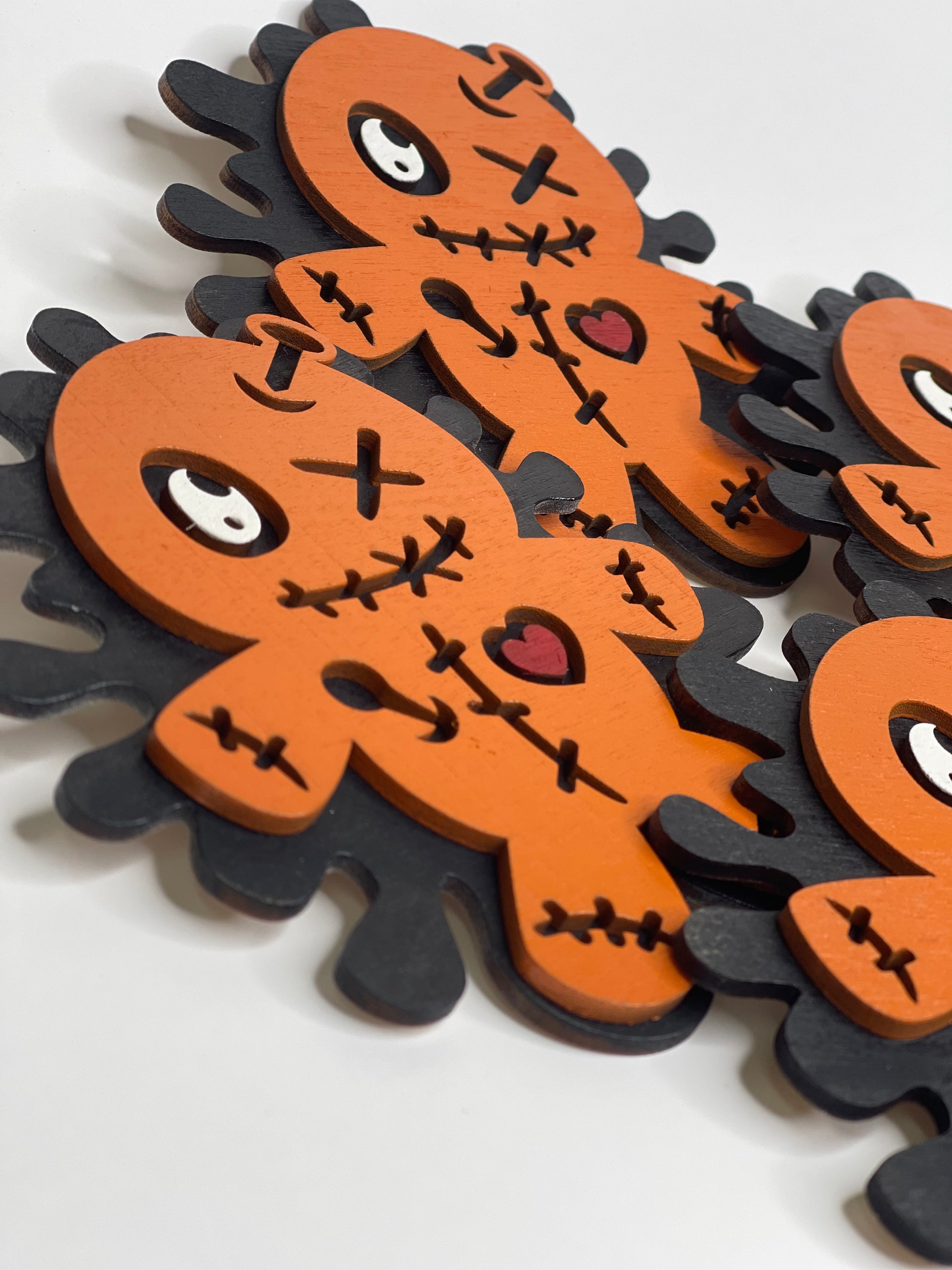 Voodoo Doll 3D Wood Coasters | Handmade Halloween Decor Gift